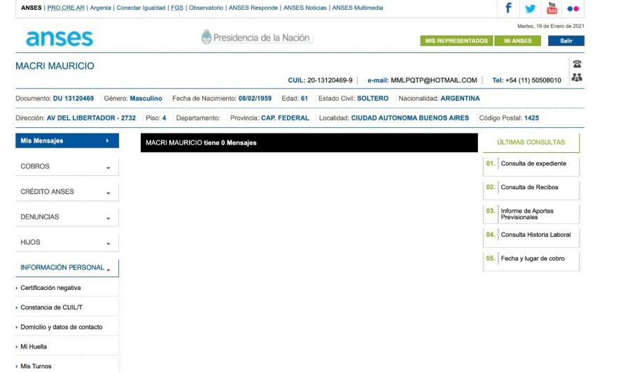 La Administración Nacional de la Seguridad Social (ANSES) informó ayer que la modificación de los datos en el perfil digital del expresidente Mauricio Macri se produjo durante su gestión al frente del Poder Ejecutivo, en el año 2018.