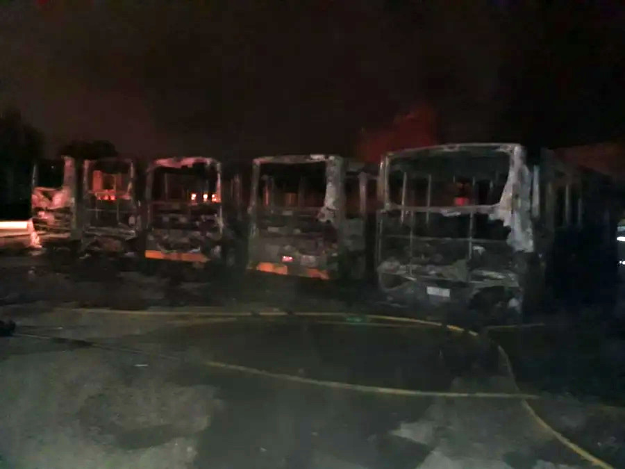 Al momento del inicio del incendio, cinco unidades estaban estacionados en el interior del galpón y otras tres en el exterior de la terminal, pero no había ningún chofer.