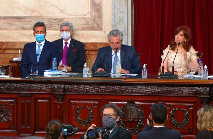 “A pesar de este panorama, y gracias al aporte solidario de millones de argentinas y argentinos, pudimos desplegar medidas sanitarias, económicas y sociales”, remarcó Fernández, quien priorizó como uno de los ejes iniciales de su discurso la necesidad de frenar el proceso cíclico de endeudamiento.