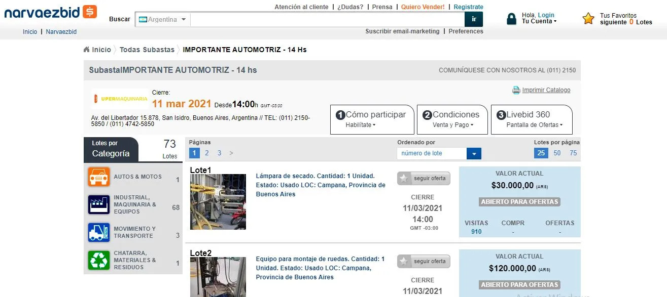 Para poder participar de la subasta se deberá ingresar a: https://www.narvaezbid.com.ar