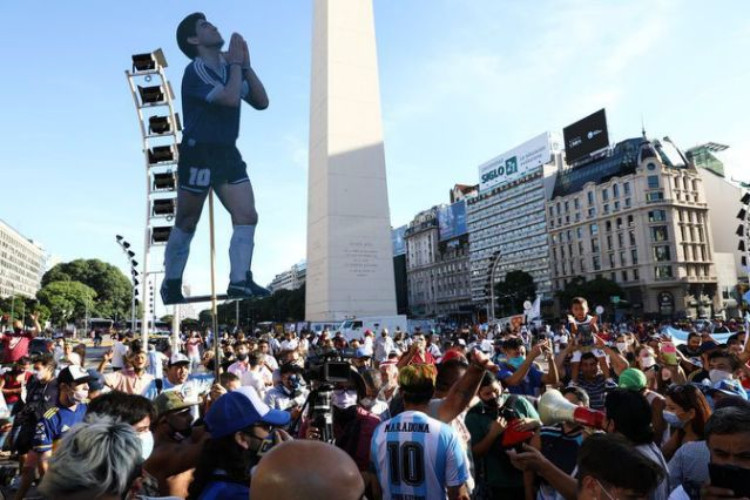 Una multitudinaria manifestación popular se llevó a cabo ayer por la tarde en el Obelisco, donde la marcha prevista se volvió concentración para pedir justicia por la muerte de Diego Armando Maradona ante la presencia inicial de su exesposa Claudia Villafañe y sus hijas Dalma y Gianinna, que se retiraron anticipadamente ante la aglomeración que se generó a su alrededor.