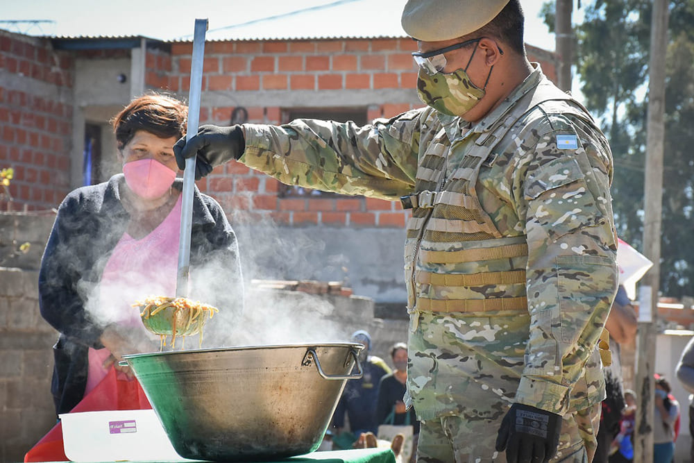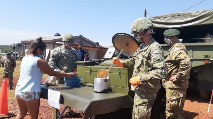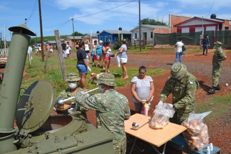 Unas cinco mil raciones por día de alimentos entrega El Ejército Argentino en las ciudades de Posadas y Garupá, en la provincia de Misiones, desde el inicio de la pandemia, informó el Ministerio de Desarrollo Social provincial.