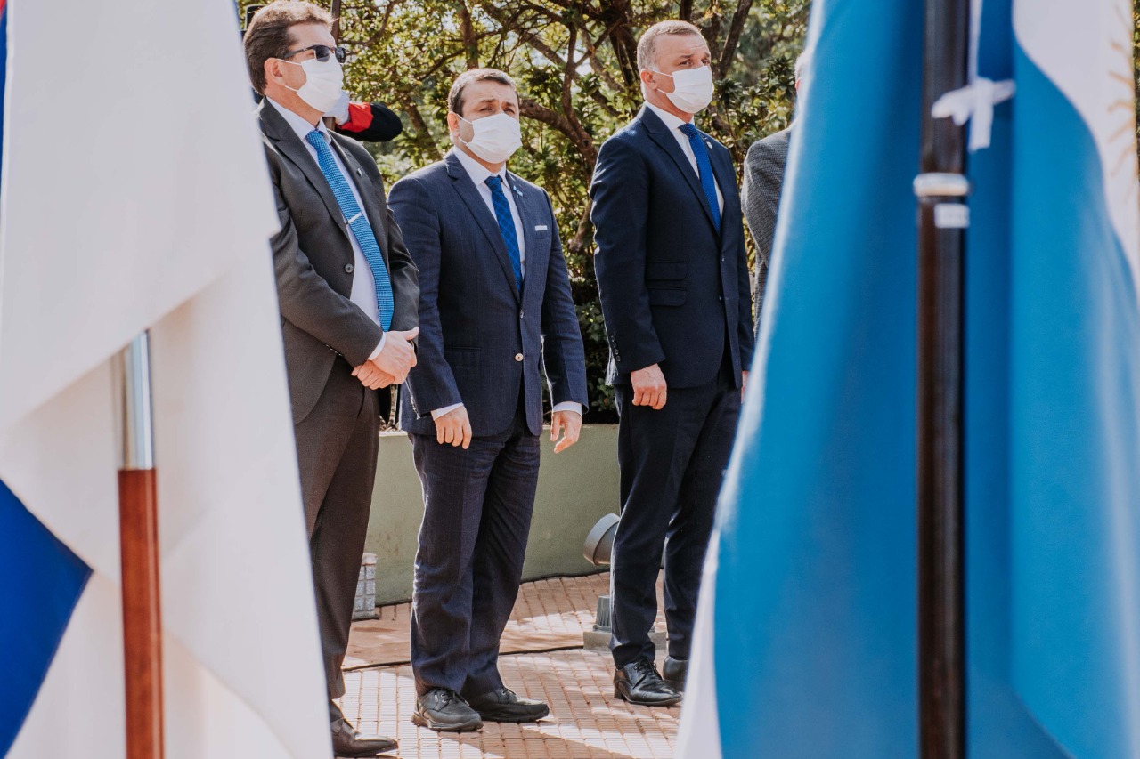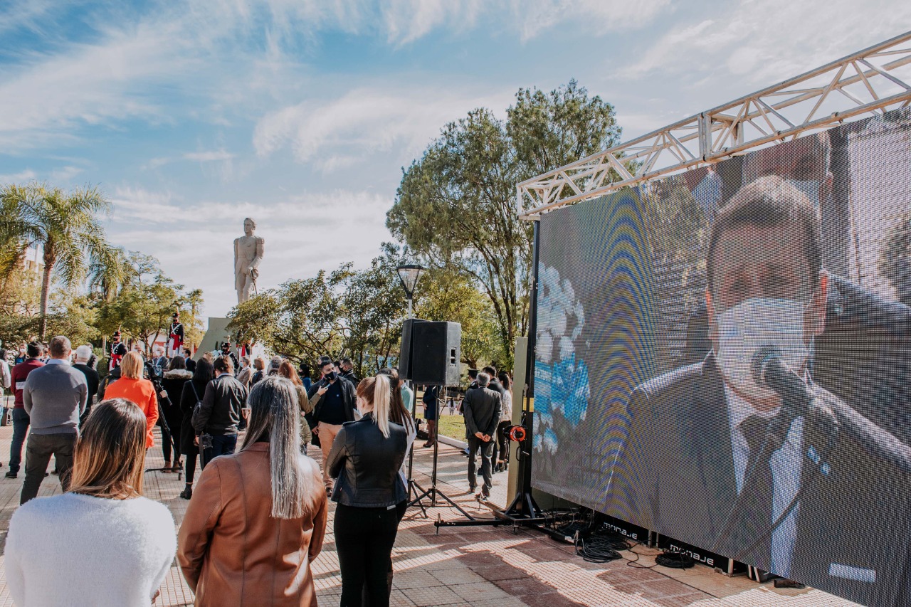 Durante el acto, destacó que la Gesta de Mayo es un hito fundamental en nuestra historia y rindió homenaje a los próceres y al pueblo que con determinación inició el camino para convertirnos en Nación. Durante la conmemoración, que siguió todos los cuidados sanitarios y los protocolos vigentes, se realizó la ofrenda floral al pie del monumento al General San Martin, y junto a las banderas de ceremonia se procedió a entonar los himnos oficiales.