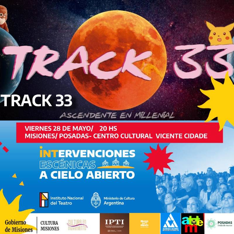 En el marco del Plan Intervenciones escénicas a Cielo Abierto del Instituto Nacional del Teatro, Track 33: un espectáculo millenial de creación colectiva se presentará este viernes en el Centro Cultural Vicente Cidade a las 20:00 horas, la misma se realizará al aire libre.