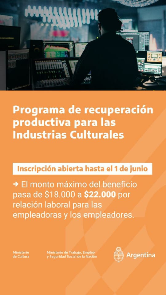 Se trata de una herramienta para sostener el empleo en las industrias culturales. Hay tiempo hasta el 1 de junio. Inscripciones en argentina.gob.ar