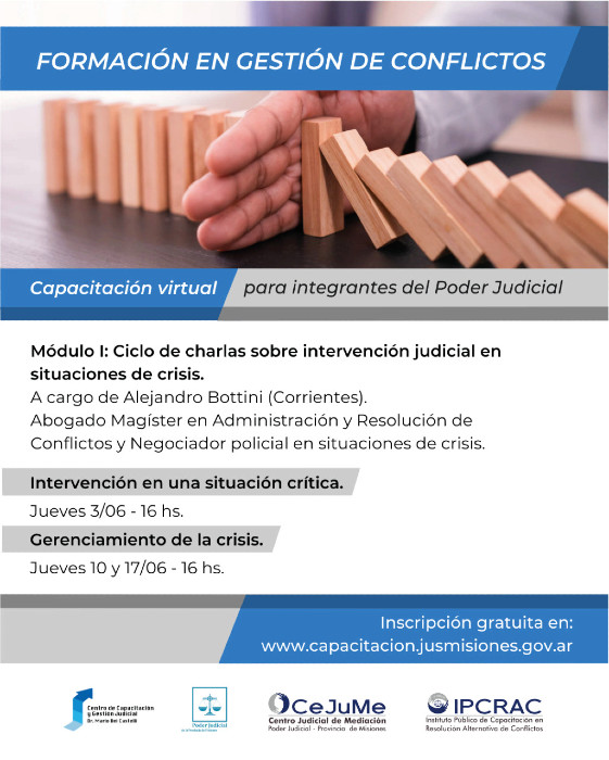 El Centro Judicial de Mediación presenta el curso de capacitación virtual ”Formación en Gestión de Conflictos” para todos los integrantes del Poder Judicial.