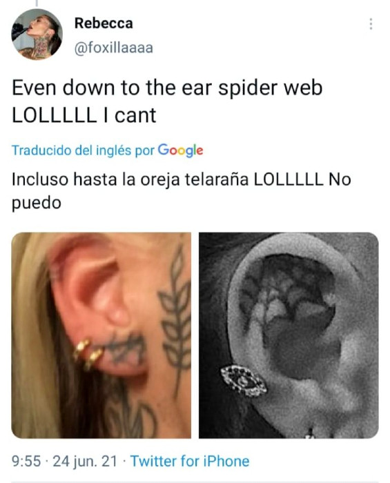 Rebecca Foxx, que suele vender contendido erótico a través de la plataforma Only Fans, eligió Twitter donde tiene alrededor de 144 mil seguidores para compartir varias fotografías donde “prueba” estas coincidencias entre Cande Tinelli y ella, sobre todo, en los tatuajes.