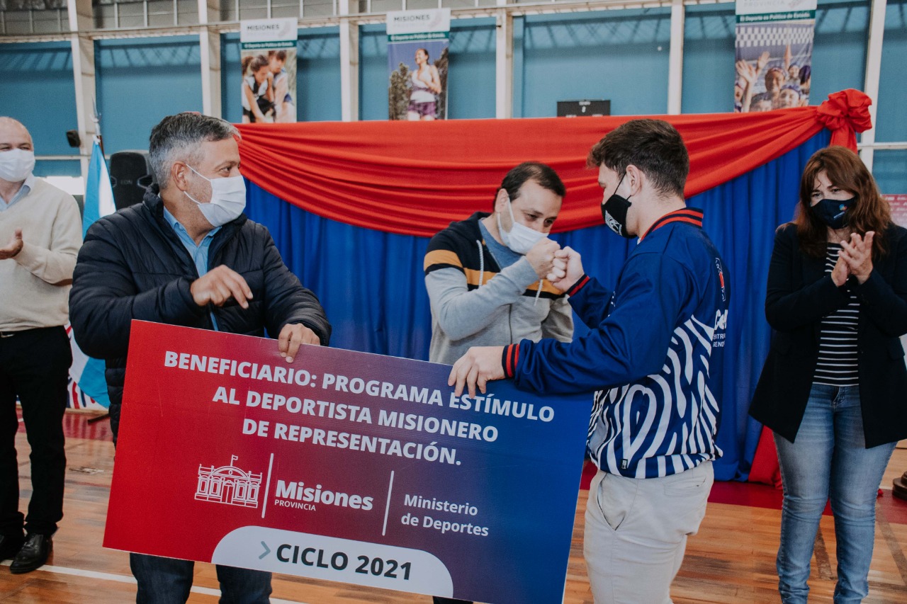 Esta mañana, el gobernador Oscar Herrera Ahuad junto al ministro de Deportes Héctor Corti entregó becas del Programa Provincial de Estímulo al Deportista Misionero de Representación 2021 a jóvenes atletas misioneros, un incentivo que alcanza a 100 deportistas de representación mediante diferentes tipos de becas establecidas según las modalidades y el nivel de las competencias nacionales e internacional en las que participan. Este programa provincial se viene desarrollando desde hace tres años de manera consecutiva y busca asistir y estimular a atletas en etapa de formación, mediano y alto rendimiento para que puedan mantener la preparación y entrenamiento.