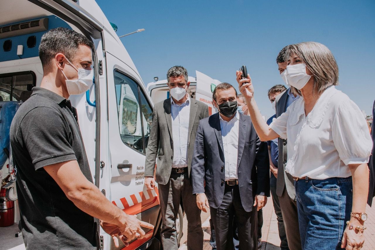 Por su parte, el viceministro de Salud de la Nación, Arnaldo Medina, reiteró que las ambulancias entregadas hoy se han comprado con financiamiento del Ministerio de Obras Públicas de la Nación y de idéntica manera se procedió para la construcción de cuatro hospitales modulares, tres de ellos modulares de frontera y el otro es un modular turístico en la localidad de Puerto Iguazú. Las ambulancias se integrarán a la Red Provincial de Emergencias para apoyar la zona donde están los módulos.