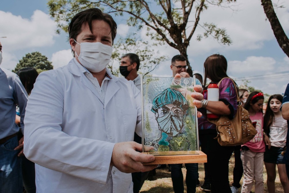 En consonancia con las palabras del Gobernador, en el acto recibieron el reconocimiento 12 personas que desempeñaron tareas clave durante la pandemia, desde médicos, APS, bioquímicos, farmacéuticos, religiosos, comerciantes, transportistas y recolectores de basura. También, con una placa conmemorativa se rindió tributo a la memoria del padre Jorge Maniak de la Congregación del Santísimo Redentor, quien fue un sacerdote local muy reconocido por su labor en la comunidad local y que falleció el año pasado a consecuencia del Covid-19.