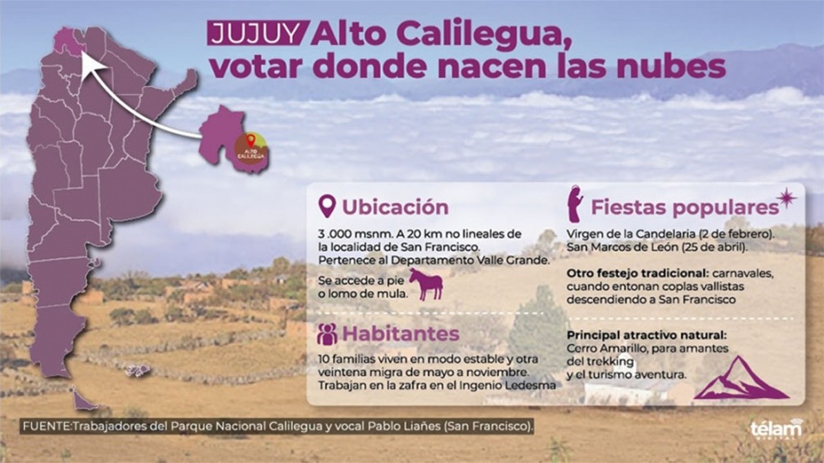 Luego de una travesía en mula de 8 horas a través de selvas, bosques y pastizales de neblina, la única urna llegó laboriosamente a la escuela 130 Alto Calilegua, un recóndito pueblo jujeño de paisajes fantásticos que cambian como una alucinación ubicado a 3.000 metros de altura, donde el padrón registra apenas a 25 ciudadanos, con dos agregados.