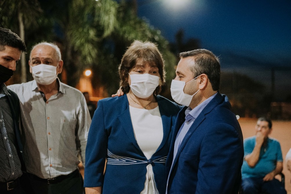 El acto se realizó en el playón municipal y acompañaron el ministro Coordinador de Gabinete, Ricardo Wellbach; el ministro de Salud Pública, Oscar Alarcón; el diputado provincial Martin Cecino junto alcaldes de municipios vecinos y miembros del Concejo Deliberante local.