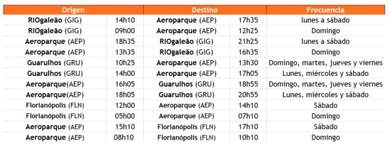 Por su parte, para GOL es el cuarto destino internacional que reinicia tras haber reinaugurado Montevideo (MVD) en Uruguay; Punta Cana (PUJ) en República Dominicana y Cancún (CUN) en México. Luego les seguirán Miami (MIA) y Orlando (MCO) en Estados Unidos a partir de mayo de 2022.