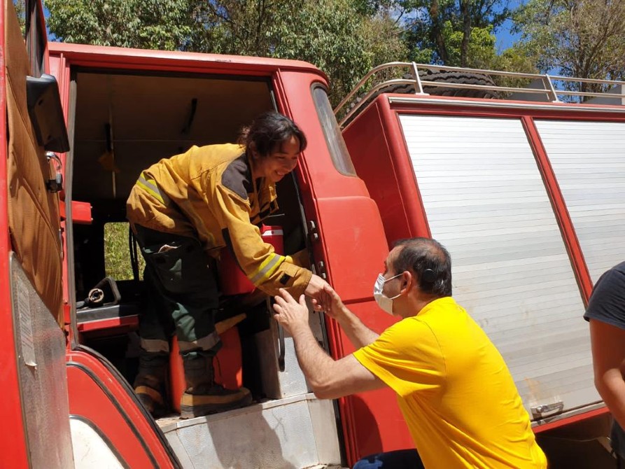 El mandatario, que desde hace días acompaña personalmente las maniobras de bomberos y brigadistas en zonas conflictivas, acompaña a quienes combaten los incendios forestales desatados en toda la provincia.