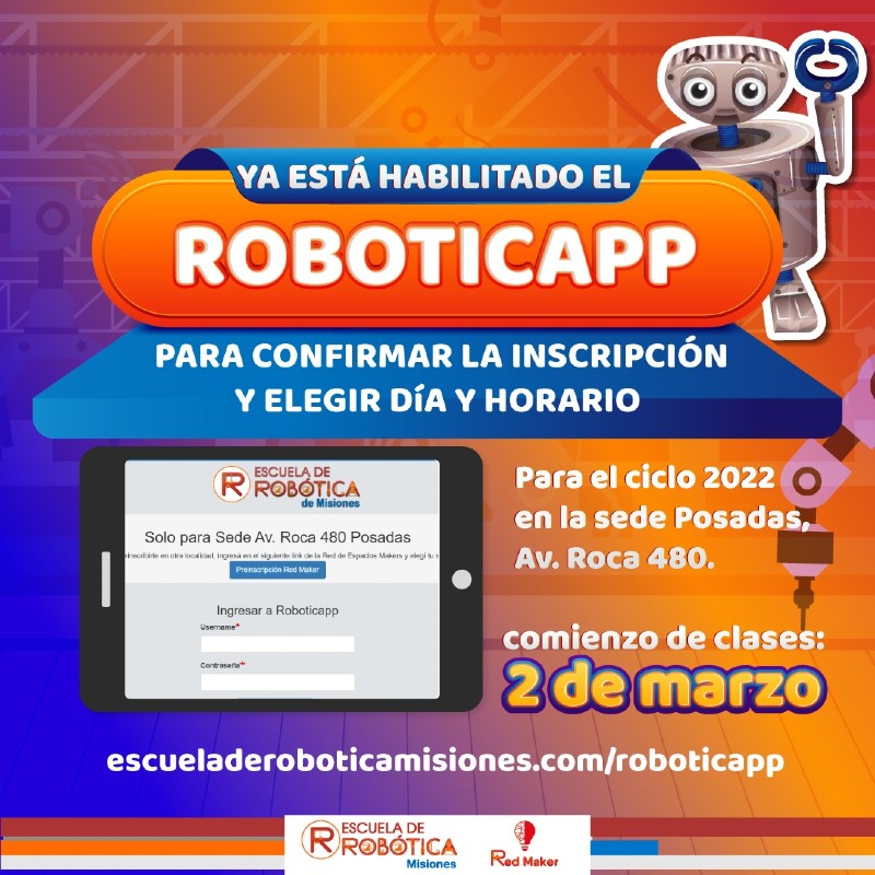 En el marco del retorno a las aulas la Escuela de Robótica de Misiones abrió las inscripciones definitivas. En esta oportunidad está destinada a los estudiantes que cursaron durante el 2021 y para aquellos que realizaron la pre-inscripción y se encuentran en lista de espera.