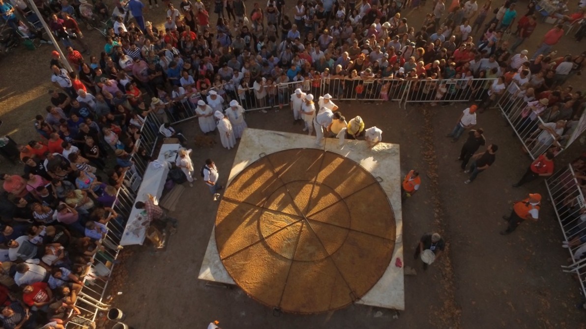 El principal atractivo de la Fiesta es el armado, amasado y la cocción de la torta frita más grande del mundo, de unos cinco metros de diámetro, para la que se utilizarán 120 kilos de harina y se freirá en unos 1.600 kilos de grasa derretida, para ser luego repartida entre los asistentes.