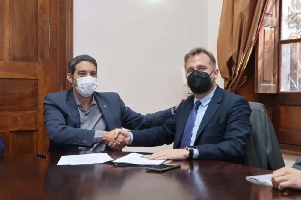 El titular de la JST, Julián Obaid, junto al ministro de Gobierno provincial, Marcelo Pérez, suscribieron el acuerdo que permitirá, mediante la realización de actividades conjunta, asesoramiento técnico recíproco, actividades de capacitación e investigación e intercambio de información.