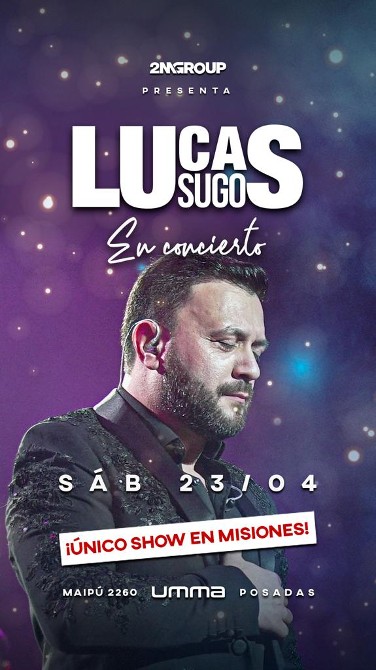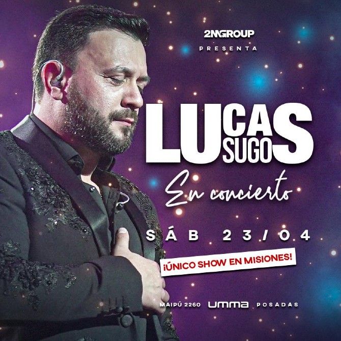 Con un único show en la provincia, el cantante uruguayo Lucas Sugo se volverá a encontrar con sus fans, el próximo sábado 23 de abril a las 23:00 horas, en UMMA (Maipú 2260). Las entradas se pueden adquirir a través de la plataforma compramisiones o físicamente en autoservicio Pitter (3 de Febrero 2099).