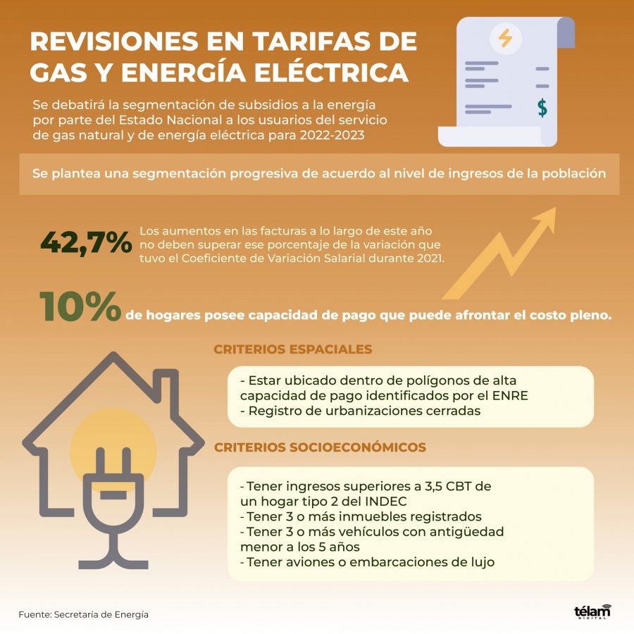 En tanto, el jueves se debatirá la implementación de la segmentación en el otorgamiento de los subsidios al precio de la energía por parte del Estado Nacional a los usuarios del servicio de gas natural y del servicio de energía eléctrica, para el bienio 2022-2023.