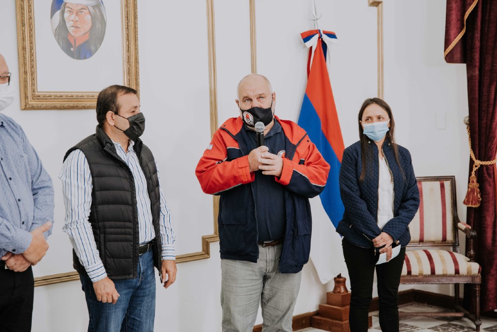 En la entrega, realizada en la Sala de Situación de Casa de Gobierno, también estuvieron presentes miembros de la comisión de la Federación y el subsecretario de Protección Civil. Jorge Atilio De León.