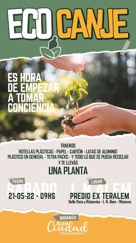 Botellas plásticas, papel, cartón, latas de aluminio, plástico en general, tetra packs, y otros elementos reciclables se pueden acercar desde las 9 de la mañana al Paseo del Emprendedor. Serán recibidos por los miembros del equipo de Ciudad Emprendedora y se van a poder llevar una planta misionera.