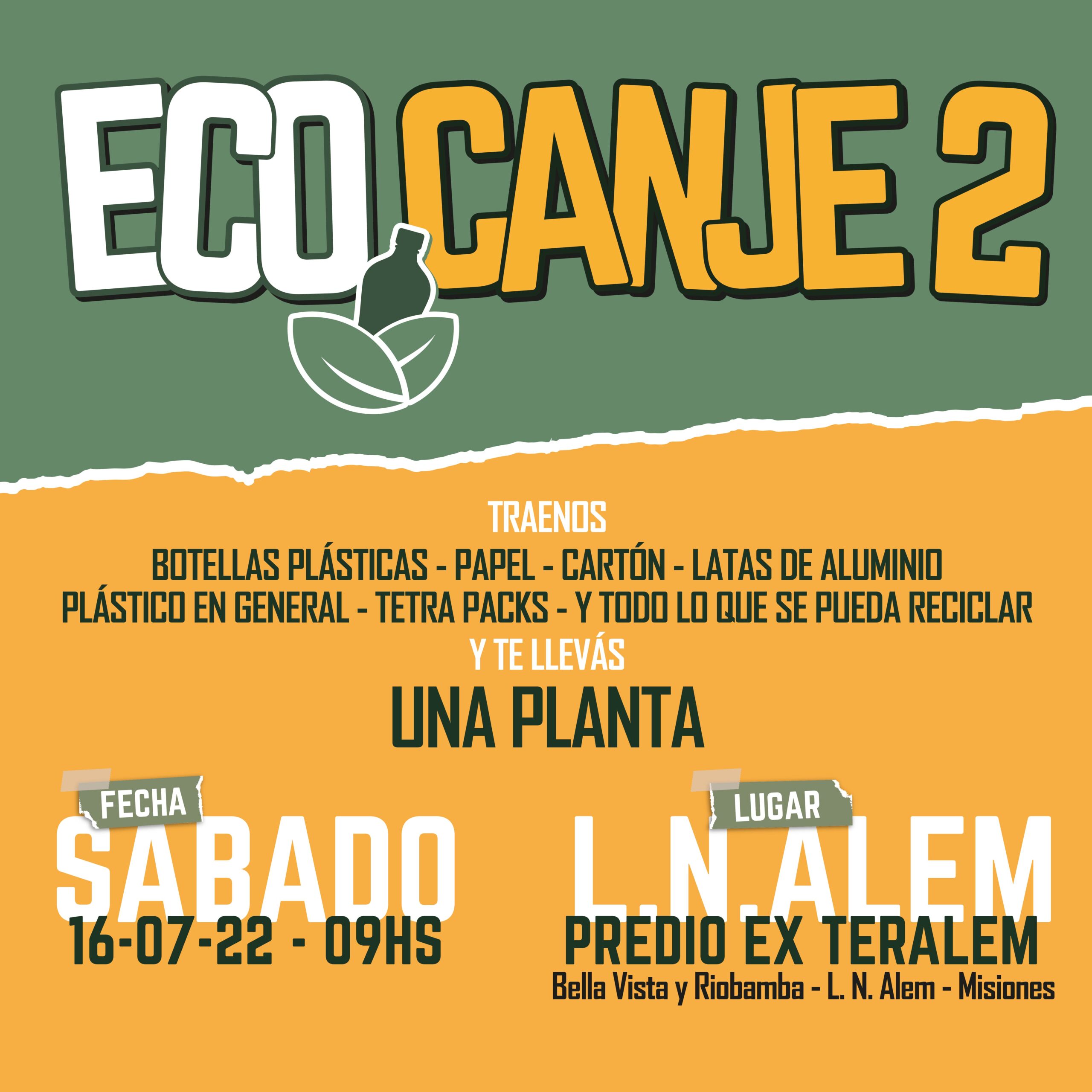 Los vecinos y vecinas de Alem podrán acercar residuos reciclables y a cambio llevarse una planta misionera. “Trabajamos para generar conciencia sobre lo que producimos y desechamos para construir una ciudad en equilibrio con el medio ambiente. Esta iniciativa se complementa con ordenanzas y propuestas que presentamos en el Concejo Deliberante” comentó el concejal Matías Sebely.