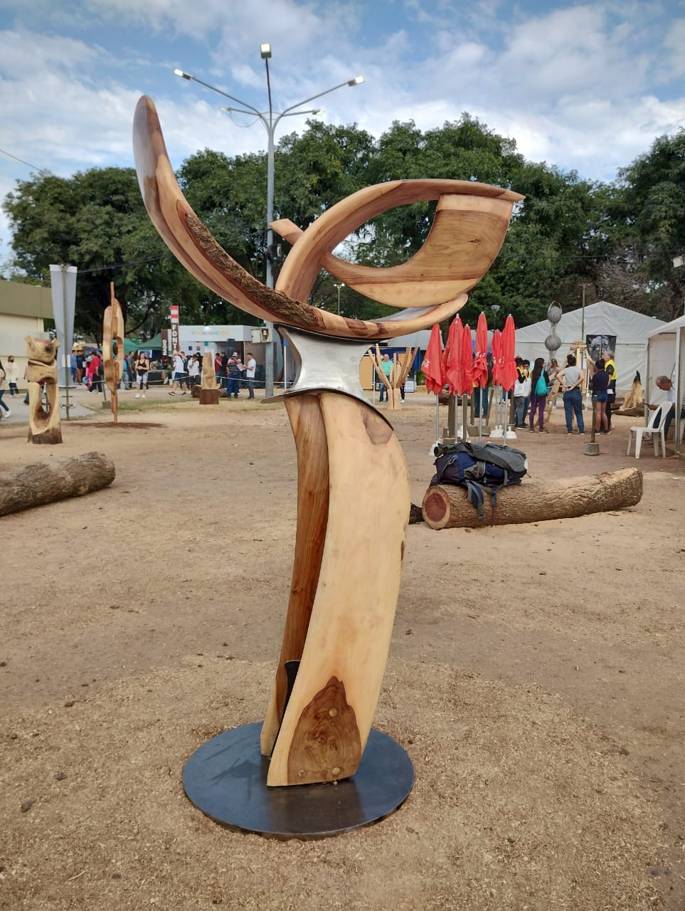 La Bienal Internacional de Escultura de Resistencia (Chaco) realizó recientemente su doceava edición, reuniendo a prestigiosos artistas nacionales e internacionales. En este contexto, se desarrolla el concurso Premio Desafío “Hierros Lider”, en el cual participaron 14 equipos de estudiantes de artes de todo el país. En esta edición, los estudiantes de la Licenciatura en Artes Plásticas de la Facultad de Arte y Diseño de la UNaM, Darlin Ricardo Stigelmeier (Puerto Esperanza), Francisco Gustavo Lopez (Oberá) y Yohana Pedrozo (San Vicente), fueron galardonados con una Mención especial con la obra titulada “El Vuelo”. Esta obra combinó madera y metal, y con ella se buscó homenajear al legado de Fabriciano Gómez, fundador e impulsor de la Bienal, fallecido en 2021, aludiendo a su vuelo artístico.