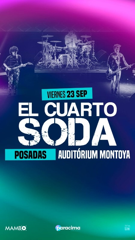 El viernes 23 de septiembre a las 21:00 horas se presentará en el auditorio del Instituto Montoya (Ayacucho 1962), la banda El Cuarto Soda llega a Posadas para viajar por la discografía de Soda Stereo y hacer vibrar al público con los clásicos de la banda integrada por Gustavo Cerati, Charly Alberti y Zeta Bosio. El Cuarto Soda, un hermoso nombre para recuperar los temas y las etapas de Soda Stereo, para muchos la mejor banda de rock en español. Justamente Brian Tolente en voz y guitarra, Gabriel Muscio en batería y Pol Walls en bajo, junto a Gonzalo Lorenzo en teclados buscaron recrear fielmente el sonido del trío argentino a lo largo de su historia y de sus diferentes etapas.