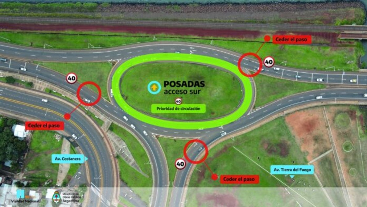 A partir de hoy 29 de agosto se modificará la prioridad de paso sobre la rotonda ubicada en la intersección del Acceso Sur de Posadas y la Av. Costanera, cercana a la Av. Tierra del Fuego.