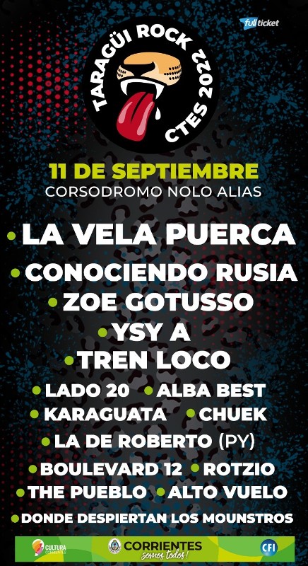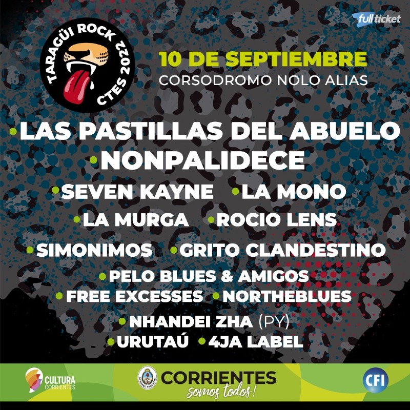 El Taragüi Rock 2022 se realizará el 10 y 11 de septiembre en la provincia de Corrientes. La Vela Puerca, Zoe Gotusso, Las Pastillas del Abuelo, Nonpalidece, Conociendo a Rusia, YSY A, entre otros.