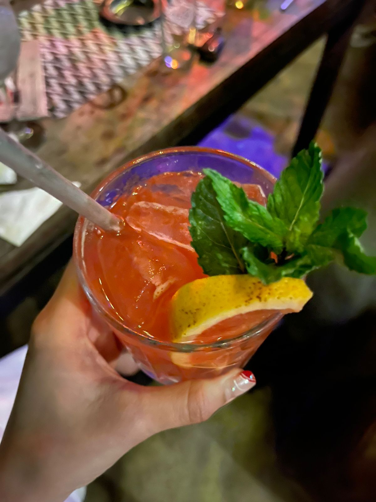 En segundo lugar llegó mi favorito de la noche, una creación de la bitchtender (Verónica Báez) que usó el famoso y poco respetado por las nuevas generaciones Amargo Obrero, al que le agregó triple sec, limón y un cordial de mandarinas. En la mesa coincidimos en que el trago debía acuñar el nombre de Gremialista por sus bases. Un éxito que fue comentado, celebrado y repetido por varios de los elegidos para esta pequeña probadita de lo que llegará en noviembre junto con las reformas edilicias.