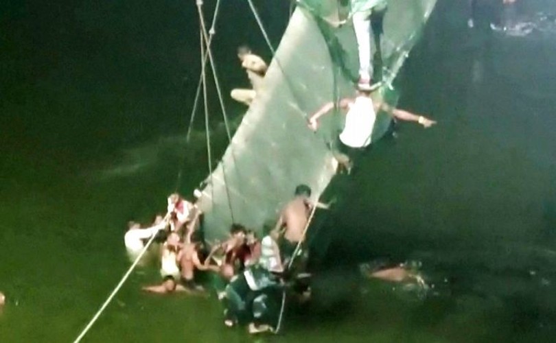El hecho se produjo en el estado de Gujarat (oeste) cuando cerca de 500 personas se encontraban en el puente celebrando un festival y los cables que sujetaban la estructura cedieron.