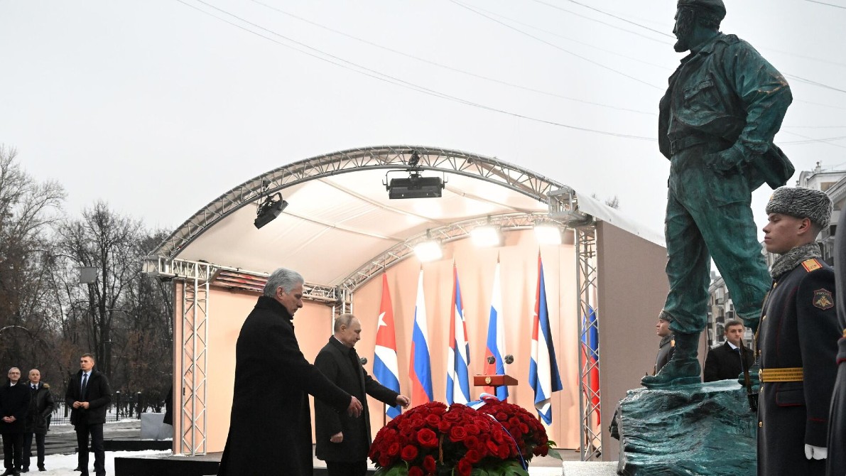 El presidente de Rusia, Vladímir Putin, y su homólogo de Cuba, Miguel Díaz-Canel, inauguraron hoy un monumento al líder de la revolución cubana, Fidel Castro (1926-2016), en una plaza de Moscú.