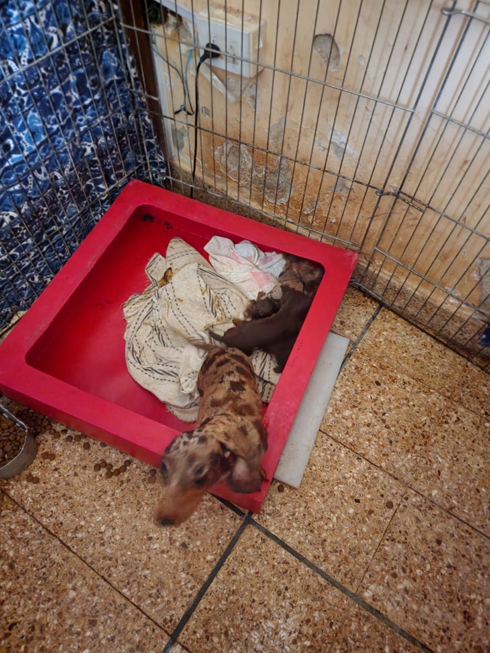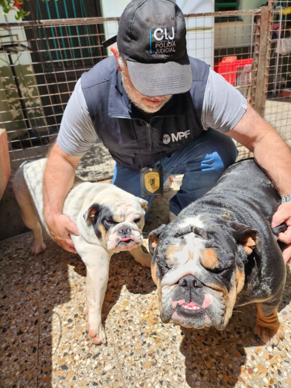 Durante el allanamiento, encontraron 22 perros, entre ellos 10 cachorros, de las razas Bulldog francés, Ovejero alemán y Dachshund, conocido popularmente como “perro salchicha”, que permanecían enjaulados en espacios reducidos.