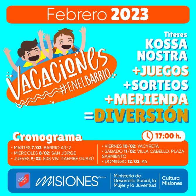 Con el objetivo de acercar los diferentes servicios que ofrece el Estado Provincial a los barrios de Posadas, el Ministerio de Desarrollo Social, la Mujer y la Juventud lleva adelante el operativo Vacaciones en el Barrio que se llevará a cabo durante todo el mes de febrero.