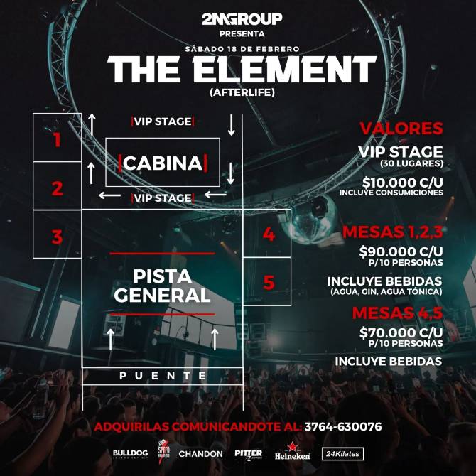 A menos de un mes de la noche mágica que brindó el dj madrileño De La Swing, este viernes 18 de febrero, la cabina del club electrónico de UMMA (Maipú 2260) se vuelva a transformar para recibir a otro exponente internacional de alto vuelo: “The Element”. Las puertas del club se abrirán a las 23:00 horas y tendrá como anfitriones a dos amigos de la casa, los djs Matfarley y Sofia Ger.