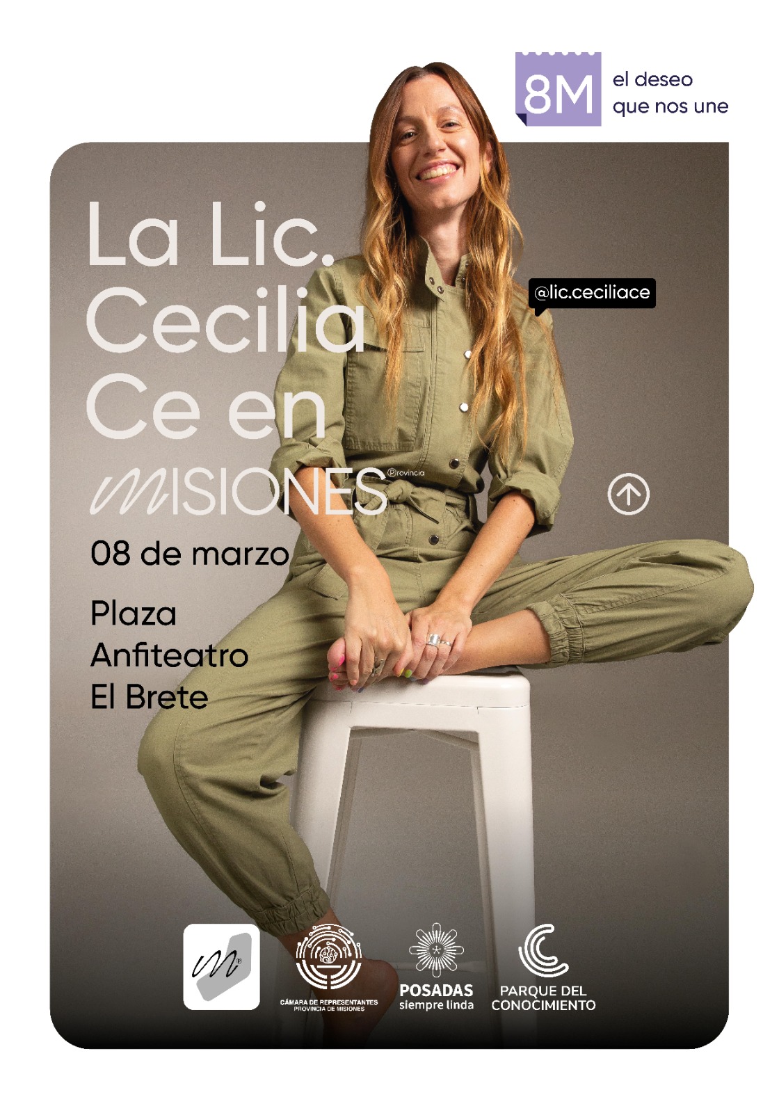 Con el objetivo de continuar por el camino de la igualdad de género, derribando mandatos y promoviendo la revolución del disfrute, el Gobierno de Misiones prepara el festival 8M: el deseo que nos une. Evento que además de artistas locales, feria de emprendedores, food trucks y patio cervecero, contará con la charla de la sexóloga conocida como la Licenciada Cecilia Ce.