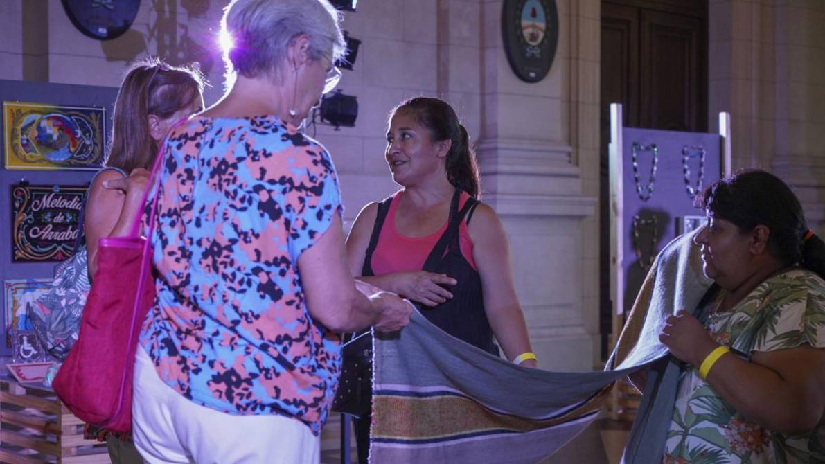 Junto a ellas exponían artesanas de Tucumán, Jujuy, Buenos Aires, Rio Negro, Entre Ríos, Santiago del Estero, Neuquén, Chaco, Corrientes y Tierra del Fuego.