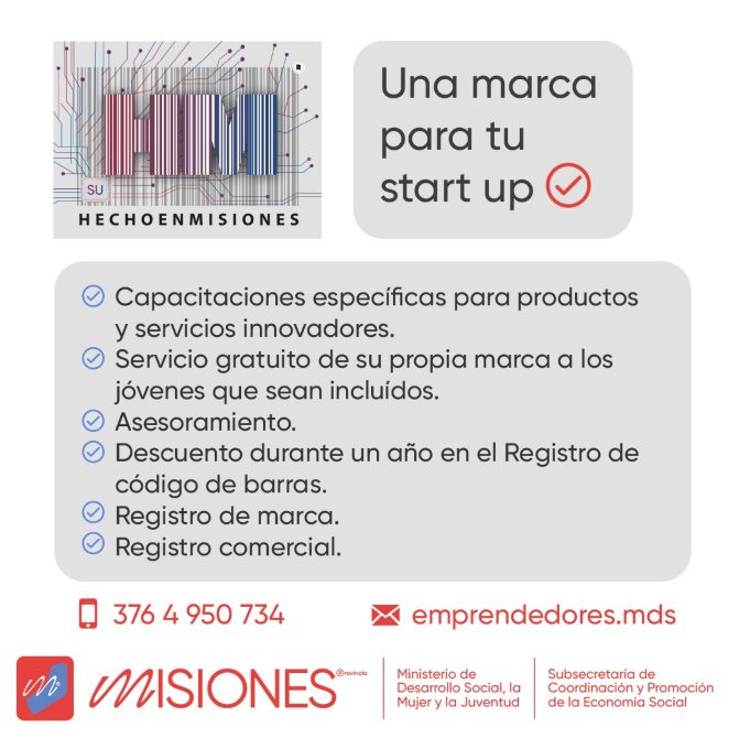Es una nueva iniciativa de la Subsecretaría que busca incluir a los jóvenes en el mercado laboral, protegerlos y ayudarlos a poder realizar sus emprendimientos o ideas. Esta línea de Hecho en Misiones contará con una serie de capacitaciones específicas para productos y servicios innovadores. Desde el área, ofrecen el servicio gratuito de su propia marca a las y los jóvenes que sean incluidos.