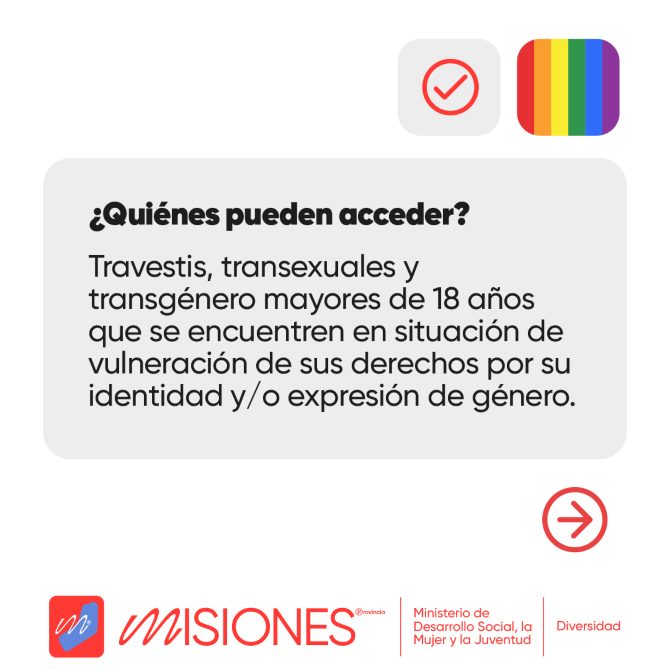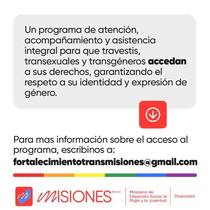 El Ministerio de Desarrollo Social, la Mujer y la Juventud abrió las inscripciones al Programa de Fortalecimiento del Acceso a Derechos para Personas Travestis, Transexuales y Transgénero. El mismo, tiene como objetivo de atender, acompañar y asistir de manera integral a personas trans mayores de 18 años que vivan en Argentina y estén en situación de vulneración de sus derechos por su identidad y expresión de género.
