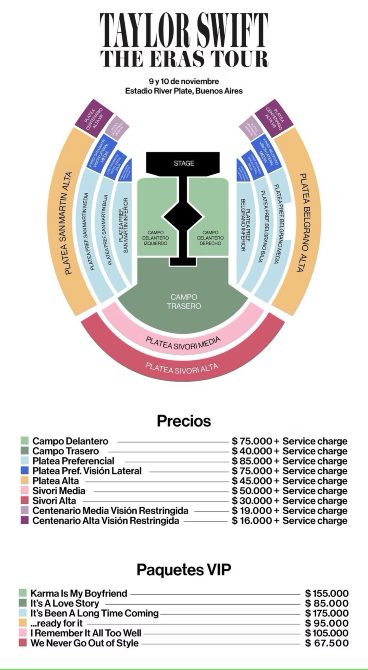 Precios de entradas para Taylor Swift en Argentina