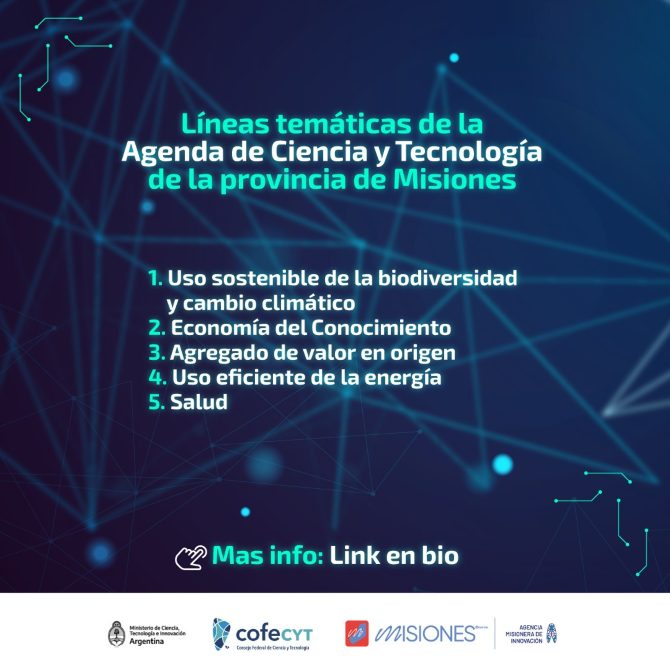 El Dr Nicolás Daviña, presidente de la Agencia Misionera de Innovación destacó que “esta convocatoria es muy importante, tiene el objetivo de fortalecer el ecosistema científico-tecnológico de la Provincia, porque traslada al marco Federal la agenda territorial de ciencia y tecnología, con líneas temáticas como uso sustentable de la biodiversidad, cambio climático, economía del conocimiento, energías renovables y salud, que tienen un fuerte impacto en los misioneros”.