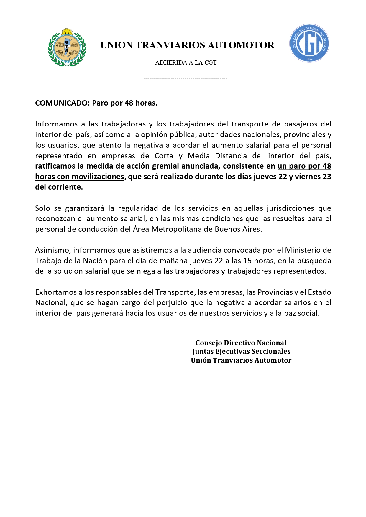 Comunicado de UTA