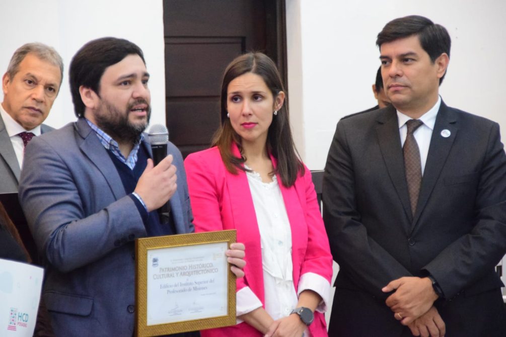 Al momento de los homenajes, se declaró de Interés Municipal la 99° Asamblea del Consejo Nacional de la Vivienda (CNV), que se realizará los días 29 y 30 de junio en el Centro del Conocimiento de la ciudad. También, se reconoció como Patrimonio Histórico, Cultural y Arquitectónico de la ciudad, al edificio del Instituto Superior del Profesorado de Misiones, en el que actualmente funcionan las Secretarías de Investigación y de Posgrado de la Facultad de Humanidades y Ciencias Sociales de la Universidad Nacional de Misiones.