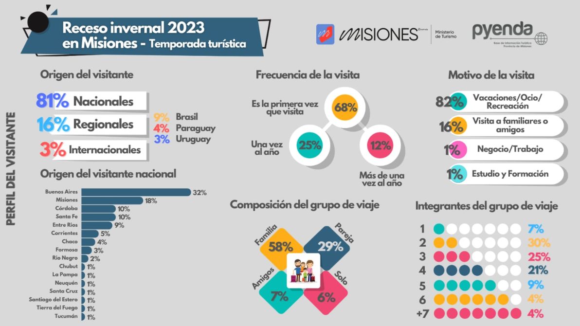 El mayor porcentaje sobre el origen del visitante, se lo lleva el nacional, seguido por regional (Brasil, Paraguay y Uruguay) y, en tercer lugar, internacional.