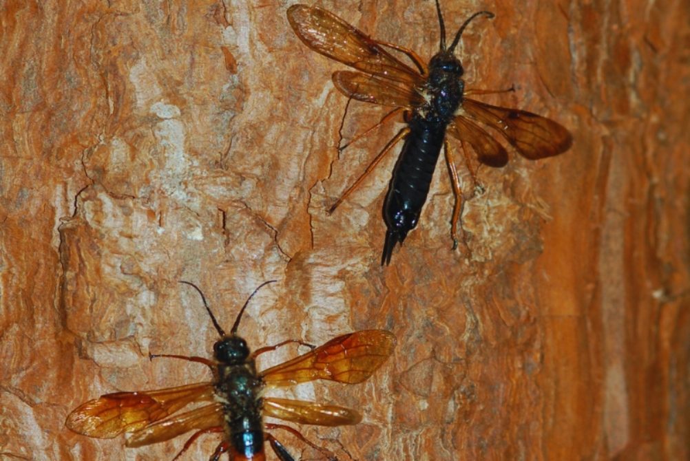 La avispa barrenadora de los pinos –Sirex noctilio– es un insecto que desarrolla su ciclo de vida en el interior de los troncos de los árboles de la familia de las coníferas. Presente en todas las regiones con plantaciones comerciales de pinos del país, esta avispa coloca los huevos a través de la corteza de los árboles, produciendo la muerte de los árboles y es considerada la principal plaga de los pinos adultos.