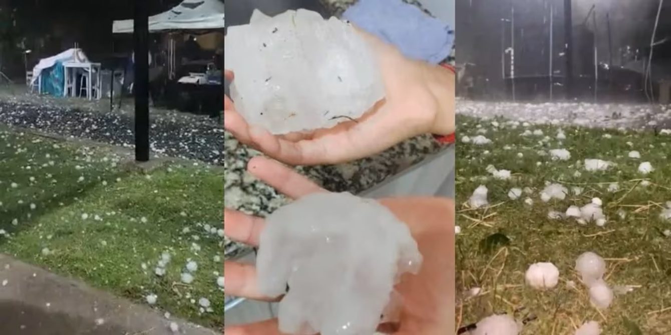 El granizo de gran tamaño que azotó a la localidad de Luján, ubicada a 120 kilómetros al norte de la Capital de San Luis, fue retratado en la red social con tamaños comparados a una pelota de fútbol 5 que junto a vientos extremos pusieron en alerta a los vecinos del lugar y provocaron destrozos.