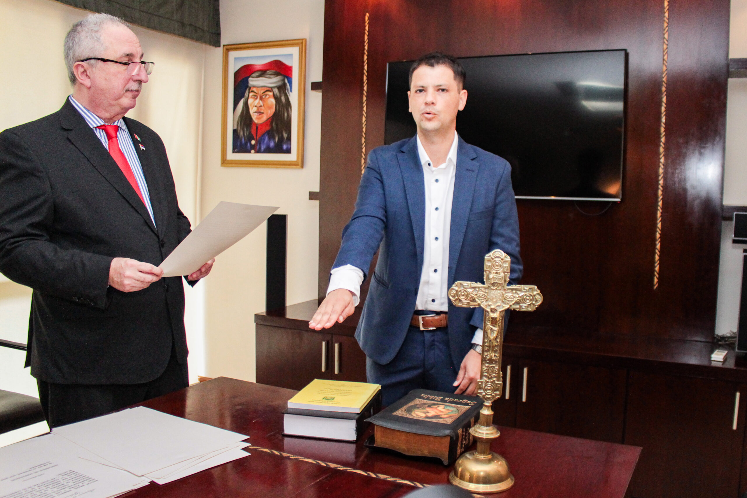 El gobernador, acompañado del vicegobernador Lucas Romero Spinelli, presentó al gabinete provincial que acompañará su gestión de gobierno. Luego tomó juramento y puso en funciones a los ministros y ministras que conforman el nuevo equipo de gobierno. Durante la jura, el flamante mandatario enfatizó en la necesidad de seguir siendo muy responsables con el manejo de los recursos de los misioneros y continuar con una provincia con cuentas ordenadas.