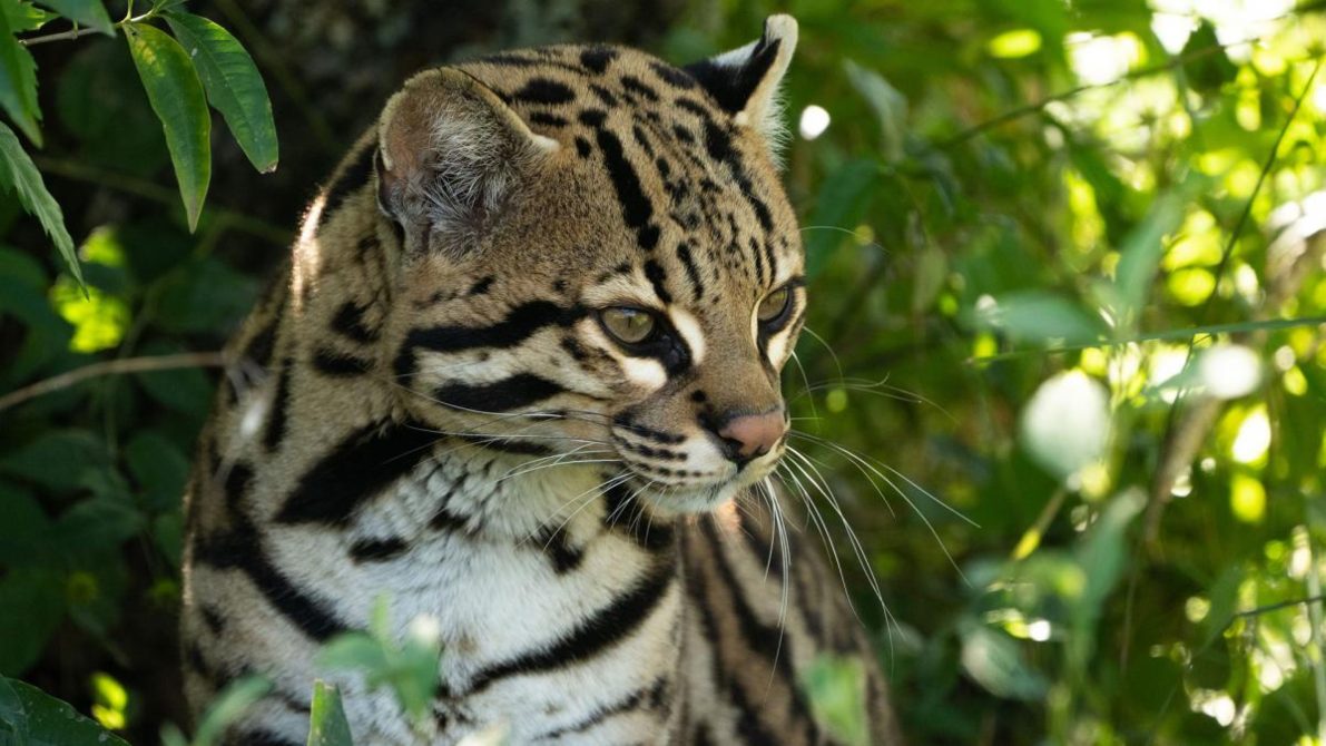Sobre las características del animal, se detalla que el ocelote «es el tercer felino más grande del continente americano y uno de los más carismáticos, los adultos pueden alcanzar los dieciséis kilos y su pelaje muestra llamativas manchas negras y alargadas con forma de ocelos».