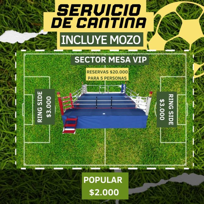 Para que la jornada sea una verdadera fiesta del deporte, la organización tendrá a disposición de los presentes, servicio de cantina y mozos. Dependiendo la ubicación el ingreso popular tiene un valor de $2.000, Ring – Side (sillas) $3.000 pesos y el sector Ring Side Vip: $20.000, el cual cuenta con una mesa, más cinco lugares. Para realizar la compra o reservas comunicarse al número: 3764 81-2185.